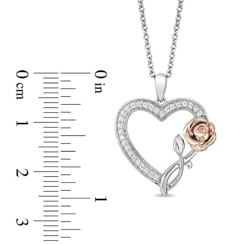 1/6 CT. T.W. Diamond Rose and Heart Pendant in Sterling Silver and 10K Rose Gold – 19″